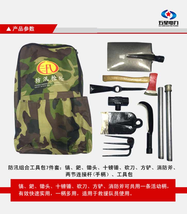 防汛搶險組合式工具包特點:靈活性好,質量可靠,可在惡劣的環境下單兵背負作業,攜帶方便,體積小、相互結合該組合工具配備齊全適用于救援隊員適用。可根據需求定制產品配件及功能性。