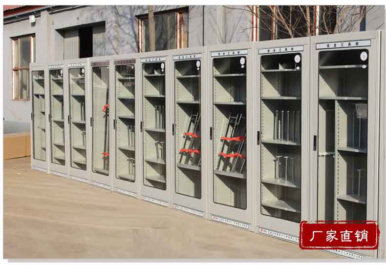 電力安全工具柜又稱安全工器具柜,按功能可以分為普通排風除濕柜,智能烘干除濕柜,智能抽濕除濕柜等 外殼選用1.2優質冷板,采用磷化鋅系、藝術型靜電噴涂,高強度鋼化透明玻璃(外觀色為微機灰)。接地線均配有接地線繞線架及帶夾反光編號牌,使接地線纏繞規范不易損壞,擺放整齊使用方便;絕緣手套配有防粘連撐板,絕緣擋板、絕緣棒、驗電筆、操作桿均設有橡膠墊定位卡,安全帶、腳扣、鑰匙設有專用掛鉤,標示牌按種類分格放置,圍網配有專用包,網桿配有專用筒,網桿座分格放置,防毒面具配有專用箱,呼吸器設有專用滑板。廣泛應用于各種電壓等級的變電站、集控站、線路工區以及電力公司客服中心等單位和部門,并適應不同溫濕度地區的使用。