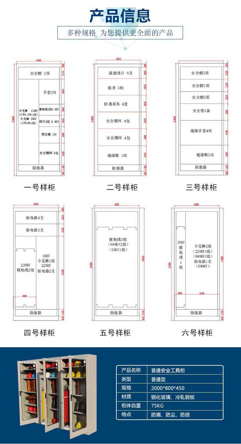 電力安全工具柜又稱安全工器具柜,按功能可以分為普通排風(fēng)除濕柜,智能烘干除濕柜,智能抽濕除濕柜等 外殼選用1.2優(yōu)質(zhì)冷板,采用磷化鋅系、藝術(shù)型靜電噴涂,高強(qiáng)度鋼化透明玻璃(外觀色為微機(jī)灰)。接地線均配有接地線繞線架及帶夾反光編號(hào)牌,使接地線纏繞規(guī)范不易損壞,擺放整齊使用方便;絕緣手套配有防粘連撐板,絕緣擋板、絕緣棒、驗(yàn)電筆、操作桿均設(shè)有橡膠墊定位卡,安全帶、腳扣、鑰匙設(shè)有專用掛鉤,標(biāo)示牌按種類分格放置,圍網(wǎng)配有專用包,網(wǎng)桿配有專用筒,網(wǎng)桿座分格放置,防毒面具配有專用箱,呼吸器設(shè)有專用滑板。廣泛應(yīng)用于各種電壓等級(jí)的變電站、集控站、線路工區(qū)以及電力公司客服中心等單位和部門,并適應(yīng)不同溫濕度地區(qū)的使用。