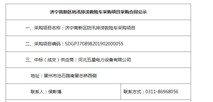 熱烈祝賀河北五星濟寧高新區(qū)防汛排澇救險車采購項目一舉中標!